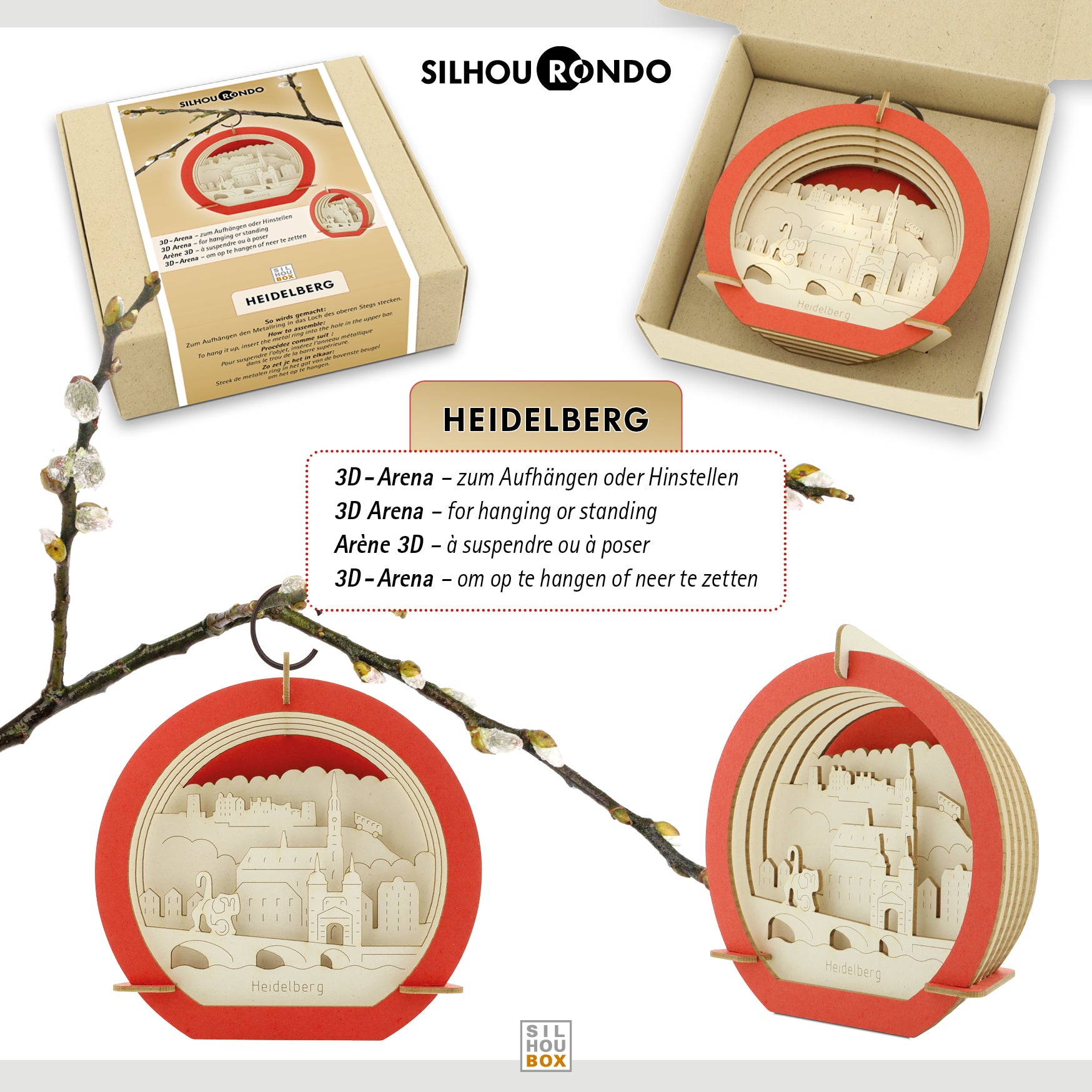 Stadtmotiv Heidelberg in 3D zum Aufhängen oder Hinstellen. Ideal als Reise-Gutschein oder Geschenk für Heidelberger, Ex- Heidelbergter und Heidelberg-Fans.