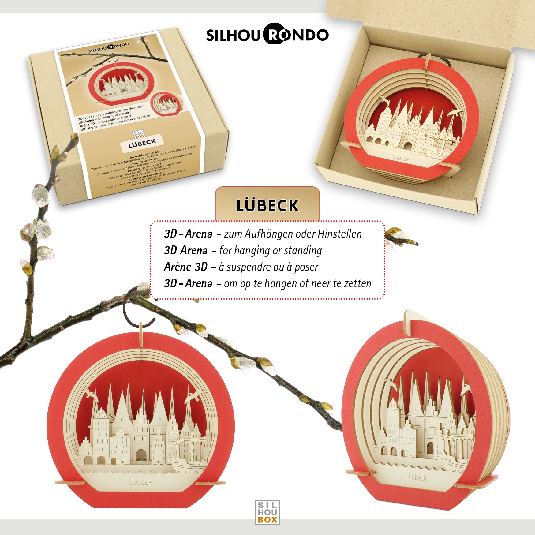 Stadtmotiv Lübeck in 3D zum Aufhängen oder Hinstellen. Ideal als Reise-Gutschein oder Geschenk für Lübecker, Ex-Lübecker und Lübeck-Fans.