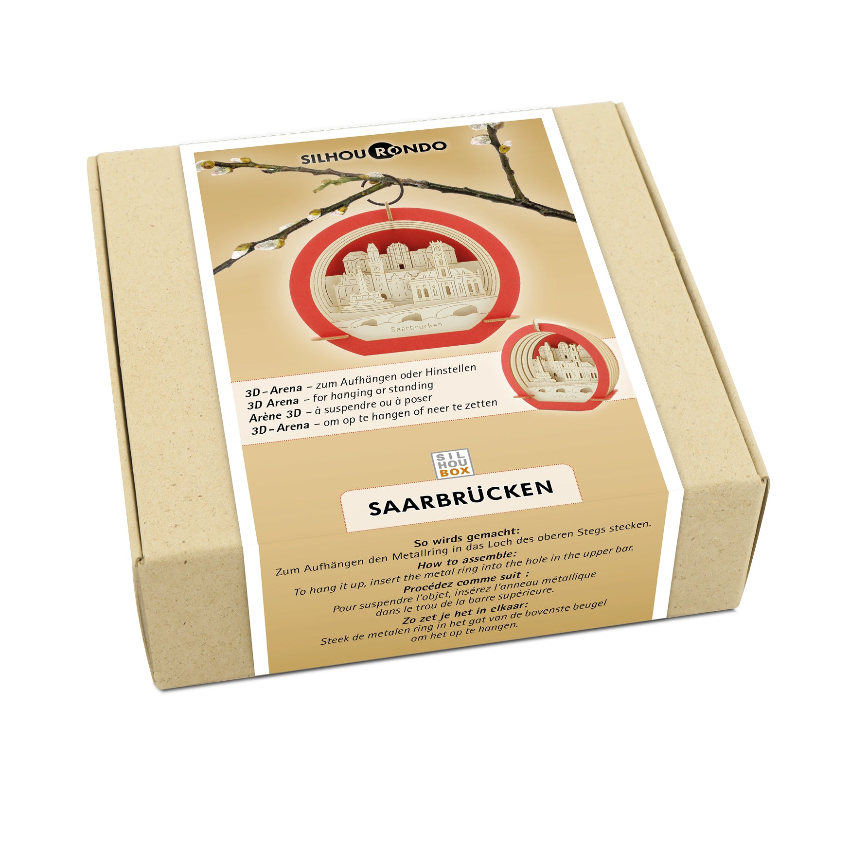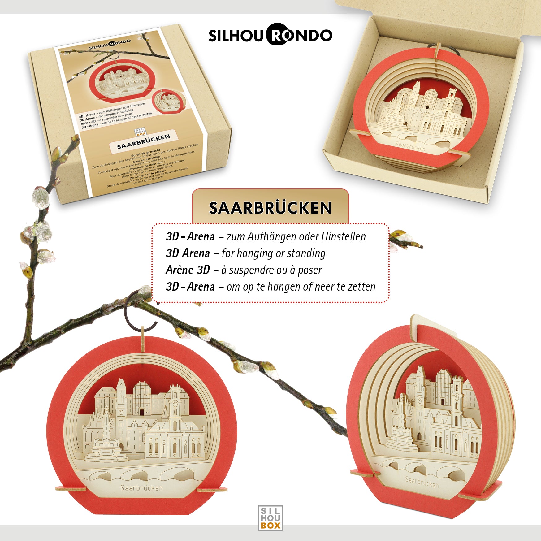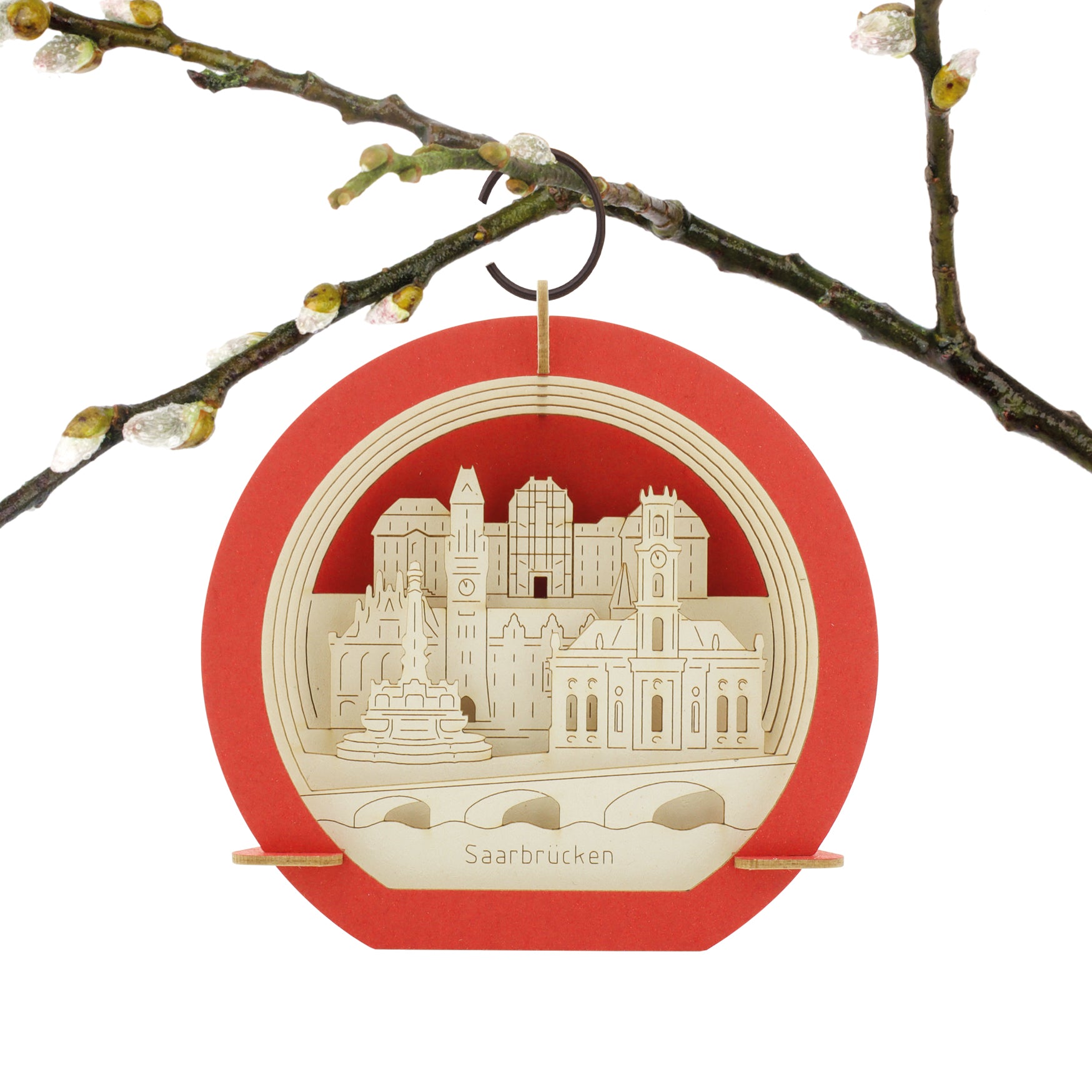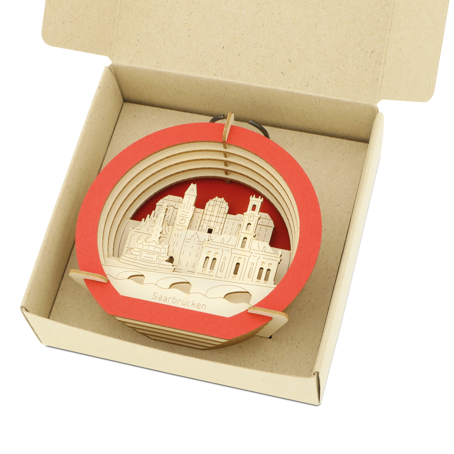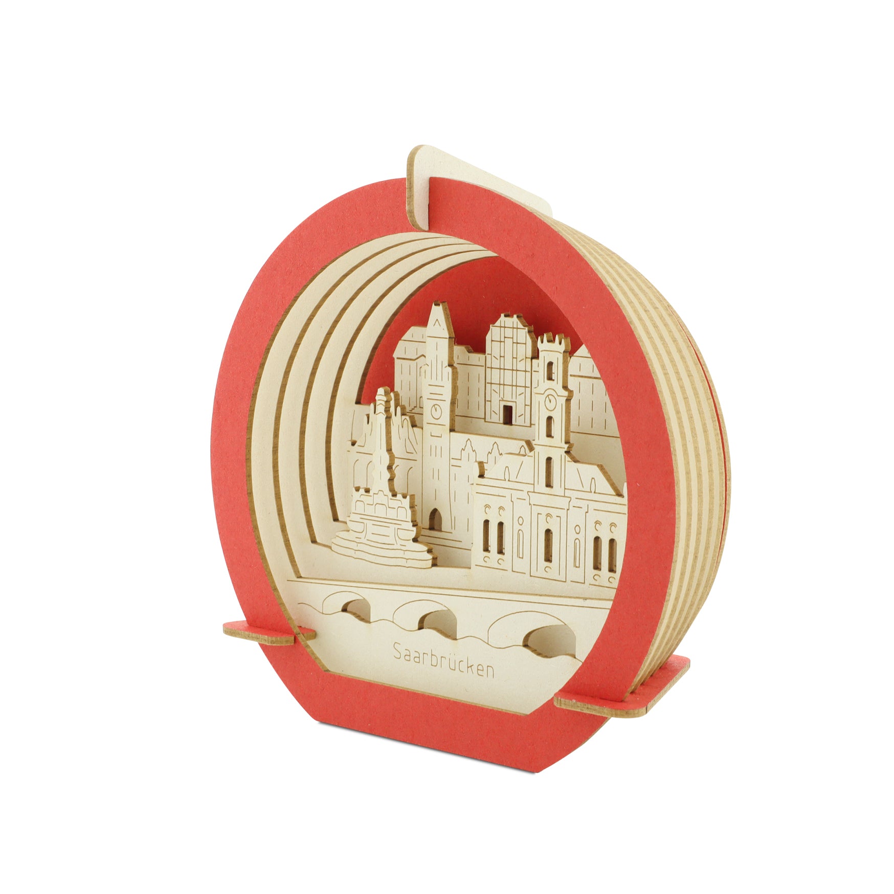 Stadtmotiv Saarbrücken in 3D zum Aufhängen oder Hinstellen. Ideal als Reise-Gutschein oder Geschenk für Saarbrücker, Ex-Saarbrücker und Saarbrücken-Fans.